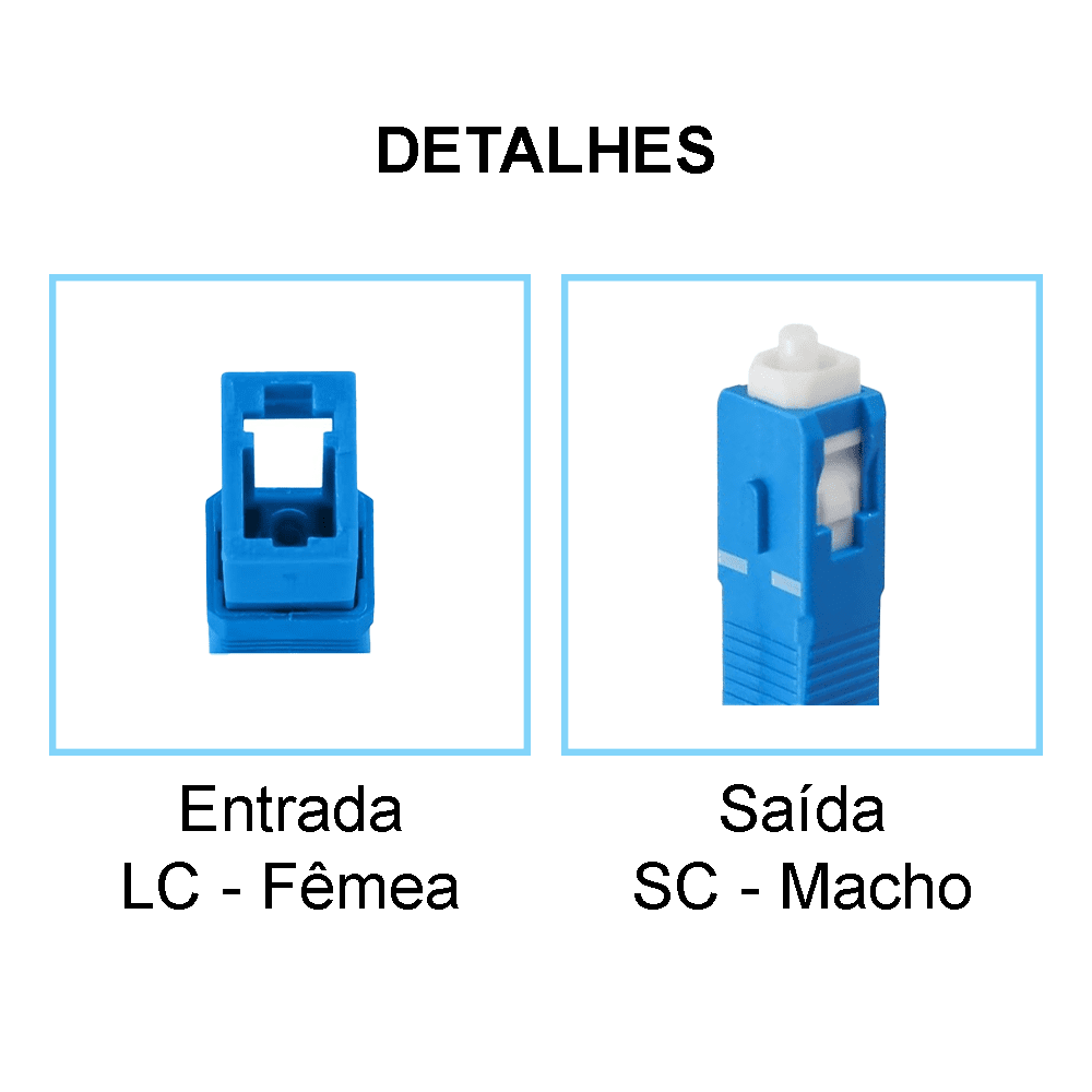 - Tipo de Conector: LC/UPC fêmea para SC/UPC macho