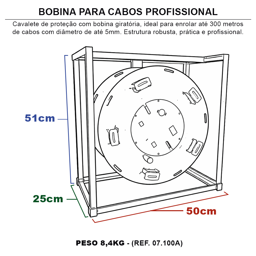 BOBINA PROFISIONAL PARA CABOS COM SUPORTE ATÉ - 300M