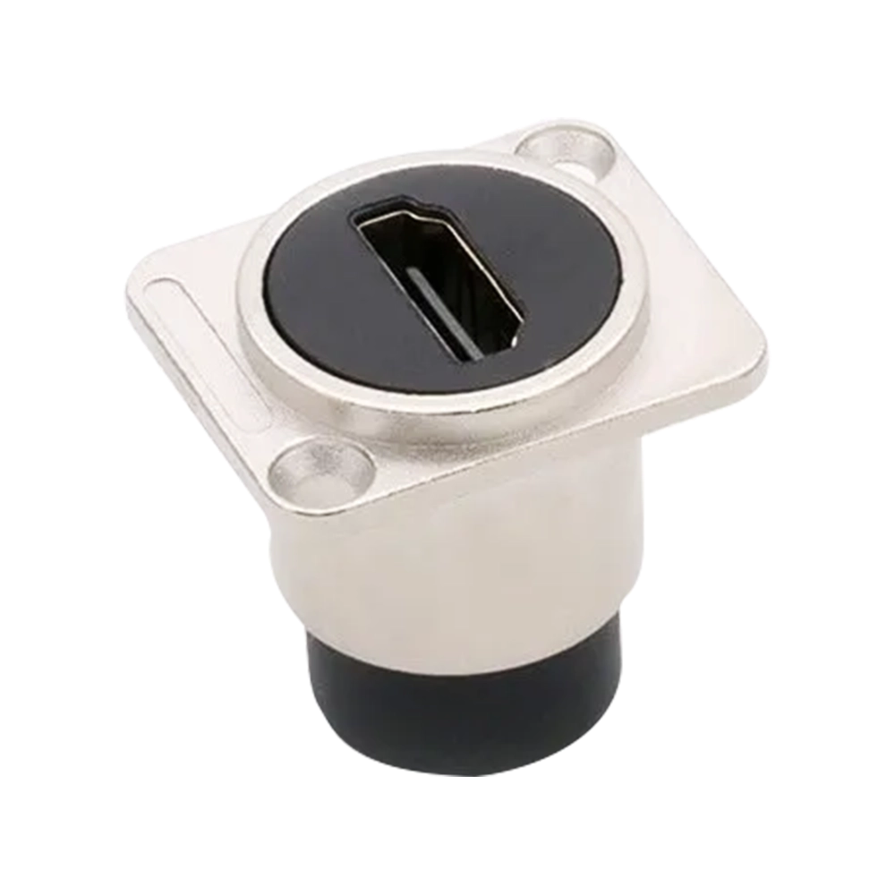 Emenda Canon HDMI Fêmea x Fêmea na cor prata, ideal para organização profissional de conexões HDMI em racks, painéis e espelhos padrão Canon.