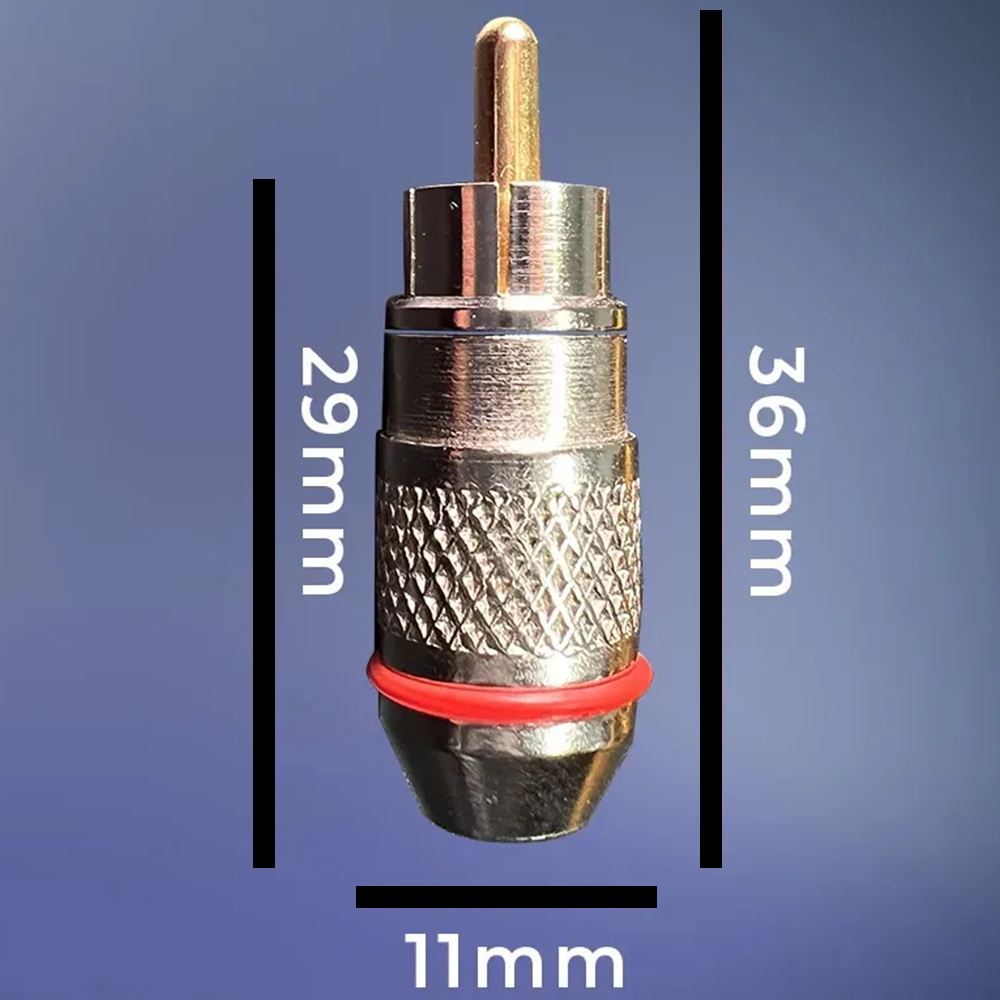 Conector RCA tipo mosquitinho, usinado em latão com acabamento de alta precisão. Conta com banho de níquel no terminal negativo e banho de ouro 24K no terminal positivo, garantindo excelente condução elétrica e resistência à oxidação. Possui isolador interno em nylon resistente a temperaturas de até 240°C, ideal para aplicações profissionais de áudio e vídeo. Compatível com cabos de até 6mm de diâmetro externo e 2mm de condutor. Solução robusta para montagens técnicas que exigem desempenho superior e durabilidade.