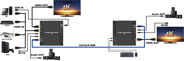 EXTENDER HDMI KVM 2.0 4K 60HZ SBRE1 CAT-5/6 STANDART (FLEXPORT)