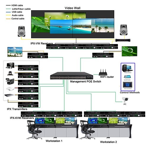 Extensor HDMI sobre IP 4K60 com KVM, Video Wall e Multiview | Encoder & Decoder Integrado, Áudio 3.5mm, 5 USB, PoE, IR Bidirecional