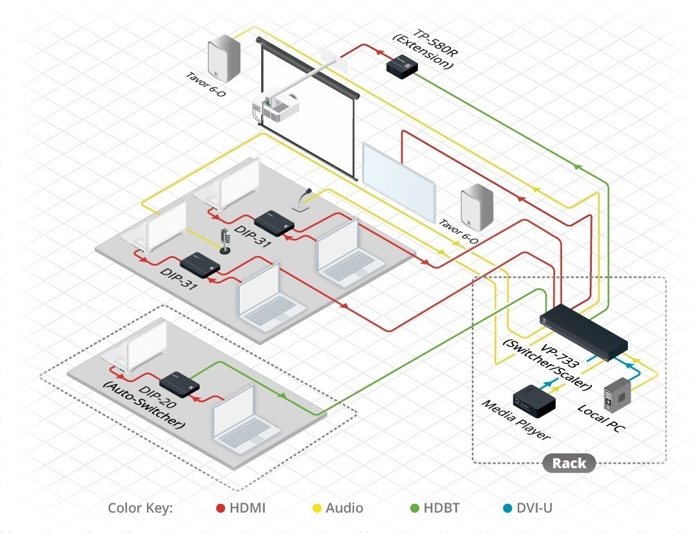 - Solução ideal para integrações multimídia em ambientes de grande porte com múltiplas fontes e displays.