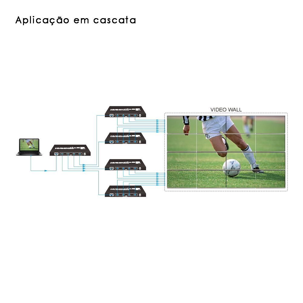 O equipamento permite ainda cascateamento com outras unidades, possibilitando a criação de vídeo walls com mais de quatro telas. Outro diferencial é a opção de habilitar ou desabilitar o áudio nas saídas, garantindo maior controle sobre a entrega audiovisual.